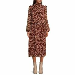 Cheap 🔥 Sanctuary Georgette Floral Print Mock Neck Long Blouson Sleeve Mini 👗 Dress Rouge Ivy ✨